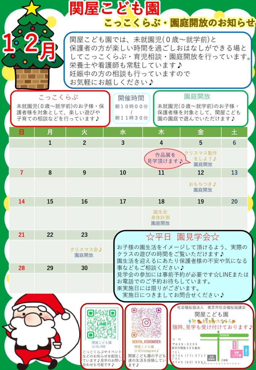 関屋こども園 未就園児対象『こっこくらぶ』 12月の開催案内です!