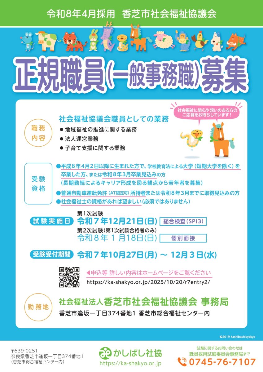 かしばし社協正規職員[一般事務職](令和8年4月採用)募集