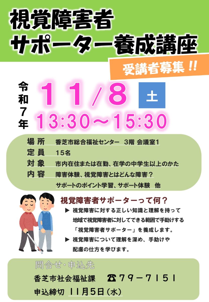 視覚障害ってどんな障害⁇・・・障害体験・サポート体験を通し、正しい知識と理解を持って、できる範囲で手助けをする『視覚障害者サポーター』の養成講座を開講します。
