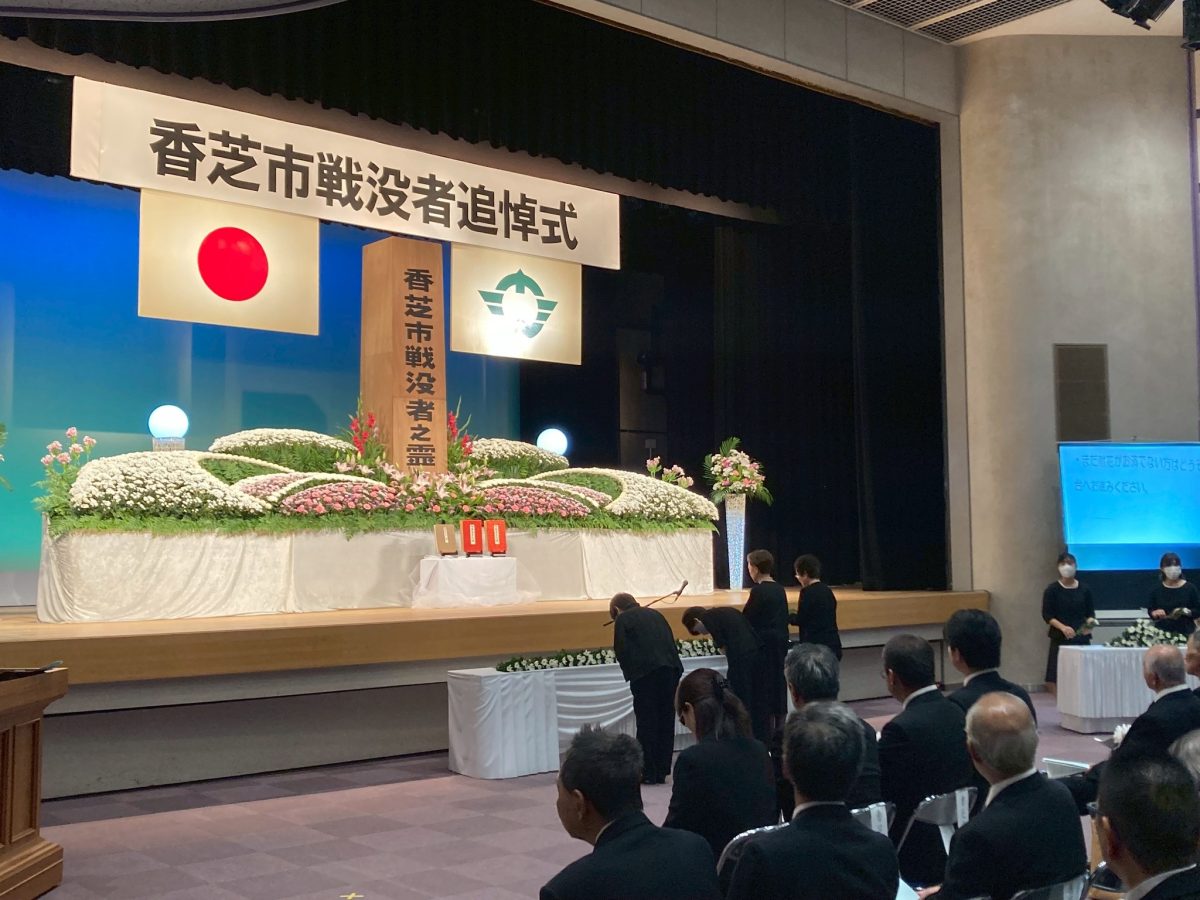 香芝市市民ホールにおいて挙行された「香芝市戦没者追悼式」に参列されました。