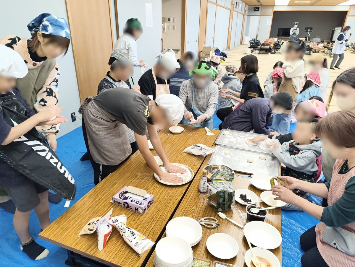 新年お楽しみ会を開催しました!お餅とケーキ作り、そしておにぎりと豚汁を作りました🍙その後、親子で作った料理をみんなで食べました。 30名を超える参加があり、作るときも、食べるときも、みんなでワイワイ楽しく過ごしました✨